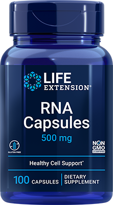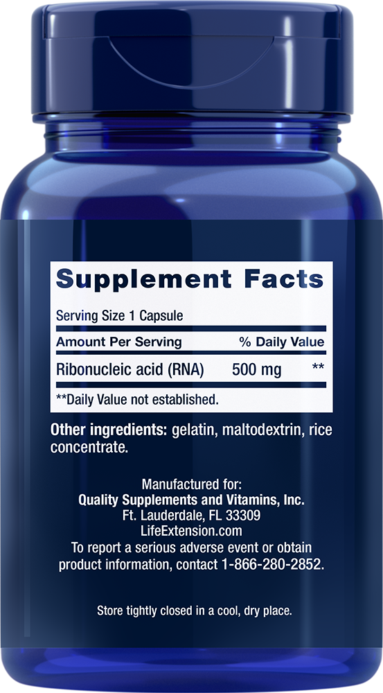 O RNA dietético é dividido em nucleotídeos no trato digestivo e pode ser usado posteriormente para atender às demandas nutricionais básicas. Nosso suplemento de RNA contém 500 mg de ácido ribonucleico (RNA) em cada cápsula.